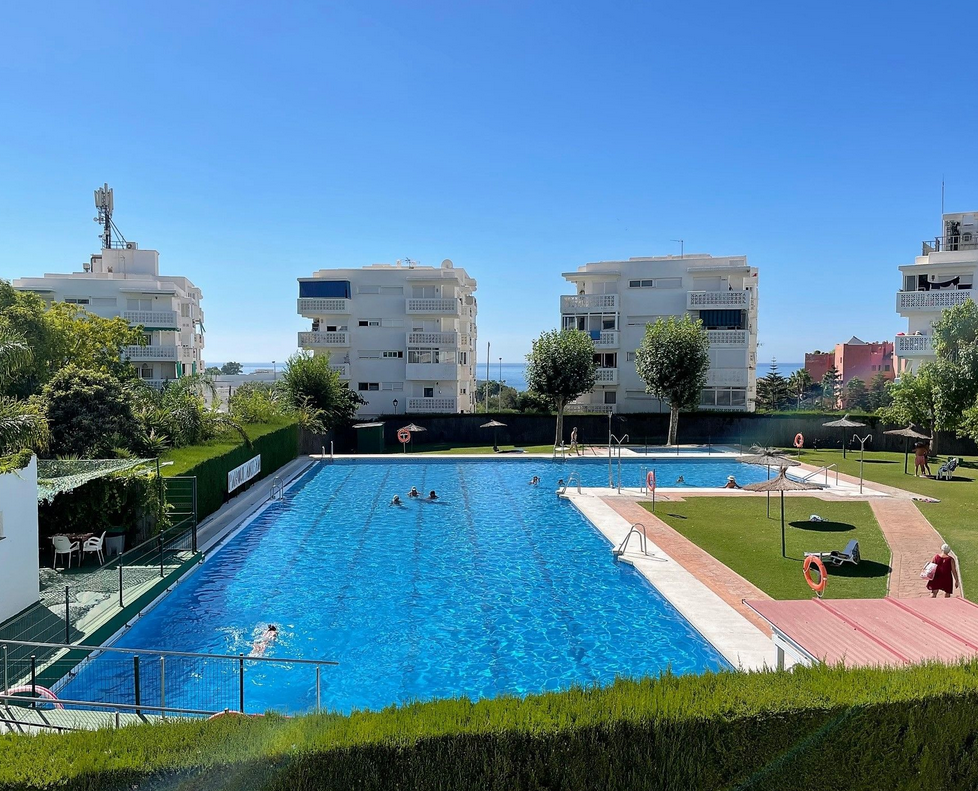 El residencial es uno de sus grandes atractivos: piscina, jardines cuidados, pistas de tenis, parque infantil y servicios a pie de calle como restaurantes y farmacia. Y, por supuesto, la playa está a solo unos minutos andando.